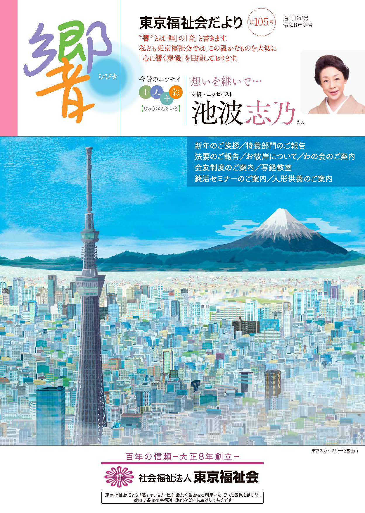 『東京福祉会だより 響(ひびき)』は、東京福祉会の会報誌です。個人会友、団体会友の皆様をはじめ都内の各福祉事務所・施設などで、配布しています。こちらでは、これまでに発行した響のPDFをご覧いただけます。 2026年 響105号 2025年 響104号 響103号 響102号 2024年 響101号 響100号 響99号 2023年 響98号 響97号 響96号 2022年 響95号 響94号 響93号 2021年 響92号 響91号 響90号 2020年 響89号 響88号 響87号 2019年 響86号 響85号 響84号 2018年 響83号 響82号 響81号 2017年 響80号 響79号 響78号 2016年 響77号 響76号 響75号 2015年 響74号 響73号 響72号 2014年 響71号 響70号 響69号 2013年 響68号 響67号 2012年 響66号 響65号 響64号 2011年 響63号 響62号 響61号 2010年 響60号 響59号 響58号
